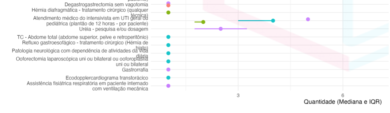A leitura que tomamos é que o pacote não está sendo suficiente para acomodar custos de OPMEs e diárias. Ainda é possível inferir que estão conseguindo contas hospitalares na ordem de R$ 10.000,00 por evento (conta hospitalar).